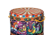 - тубы и коробки из жести с яркими праздничными рисунками;